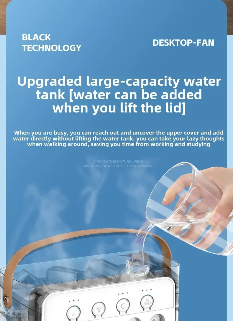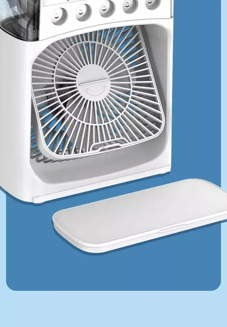 Basta adicionar água ou cubos de gelo no reservatório para sentir uma brisa gelada em segundos.